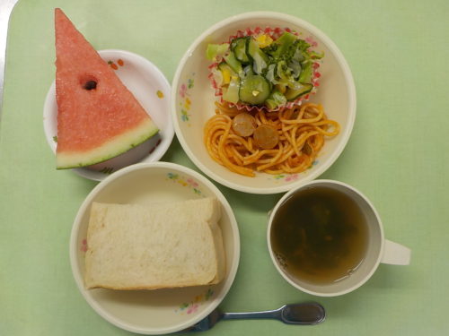 ホームきょうの給食 6/17今日の給食 2021年6月17日2021年7月31日 子どもたちが大好きな給食やおやつを毎日紹介しています! 【幼児食・乳児食】 昼食 バターサンド オクラスープ ナポリタン ミックスサラダ すいか 3時のおやつ 牛乳 高菜ごまおにぎり 食べる小魚 10時のおやつ(乳児のみ) 牛乳