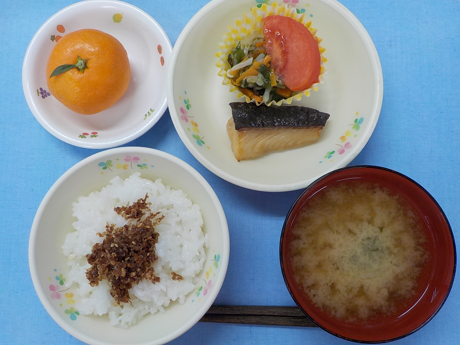 ホームきょうの給食 12/27 今日の給食 2021年12月27日 子どもたちが大好きな給食やおやつを毎日紹介しています! 【幼児食・乳児食】 昼食 おかかごはん みそ汁 銀だらの照り焼き わかめのナムル風 トマト みかん 3時のおやつ 牛乳 こぎつねごはん ぬか漬け 10時のおやつ(乳児のみ) 牛乳