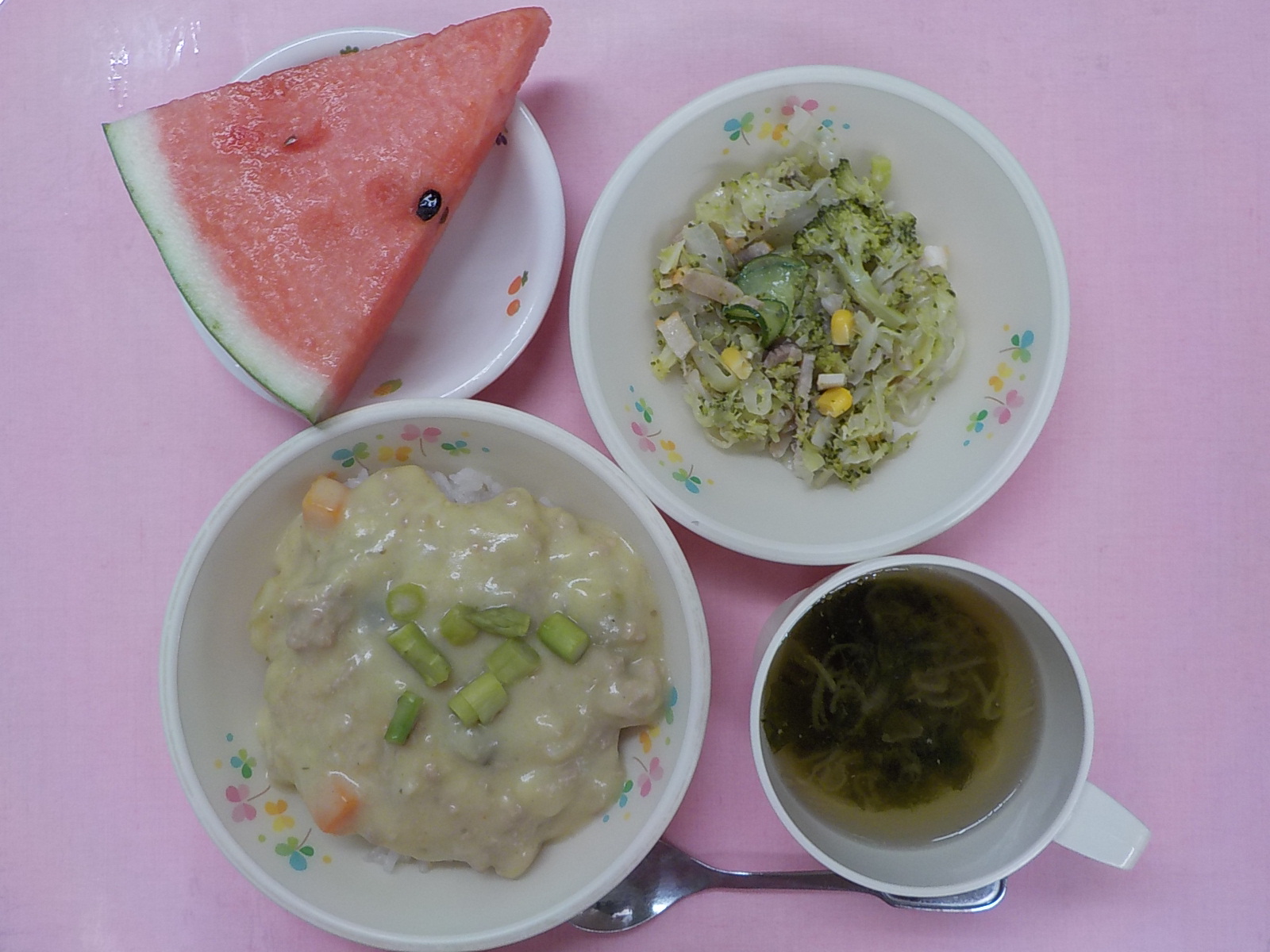 ホームきょうの給食 8/19 今日の給食 2021年8月19日 子どもたちが大好きな給食やおやつを毎日紹介しています! 【幼児食・乳児食】 昼食 夏野菜カレーライス わかめスープ 森のサラダ すいか 3時のおやつ 牛乳 小町麩スナック 10時のおやつ(乳児のみ) 牛乳