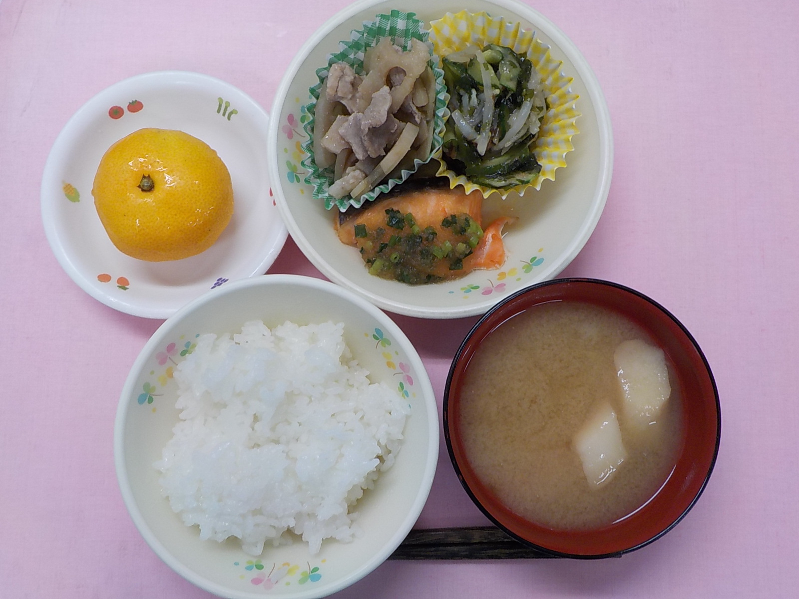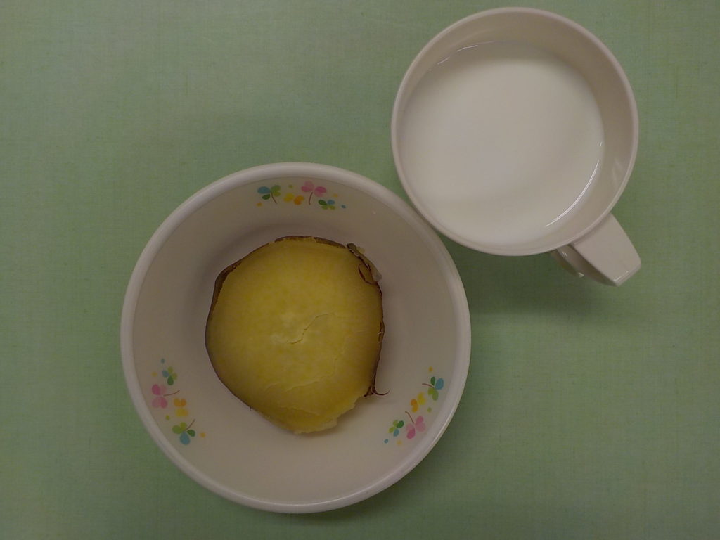 ホームきょうの給食 10/15 今日の給食 2021年10月15日 子どもたちが大好きな給食やおやつを毎日紹介しています! 【幼児食・乳児食】 昼食 ごはん みそ汁 鮭のおろしがけ 豚肉れんこん 和風サラダ みかん 3時のおやつ 牛乳 焼いも 10時のおやつ(乳児のみ) 牛乳