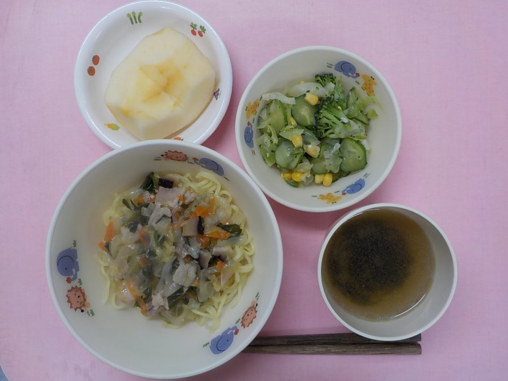 ホームきょうの給食 10/16 今日の給食 2021年10月16日 子どもたちが大好きな給食やおやつを毎日紹介しています! 【幼児食・乳児食】 昼食 あんかけ焼きそば わかめスープ ミックスサラダ りんご 3時のおやつ 麦茶 昆布おにぎり 食べる小魚 10時のおやつ(乳児のみ) キャロットジュース