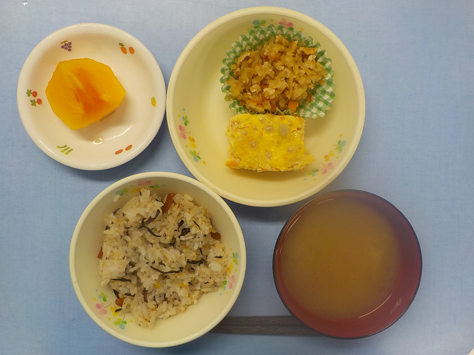 ホームきょうの給食 11/9 今日の給食 2021年11月9日2021年11月10日 子どもたちが大好きな給食やおやつを毎日紹介しています! 【幼児食・乳児食】 昼食 ひじきごはん みそ汁 千草焼き 切干大根の煮物 柿 3時のおやつ 牛乳 ちゃんぽん麵 10時のおやつ(乳児のみ) ジョア