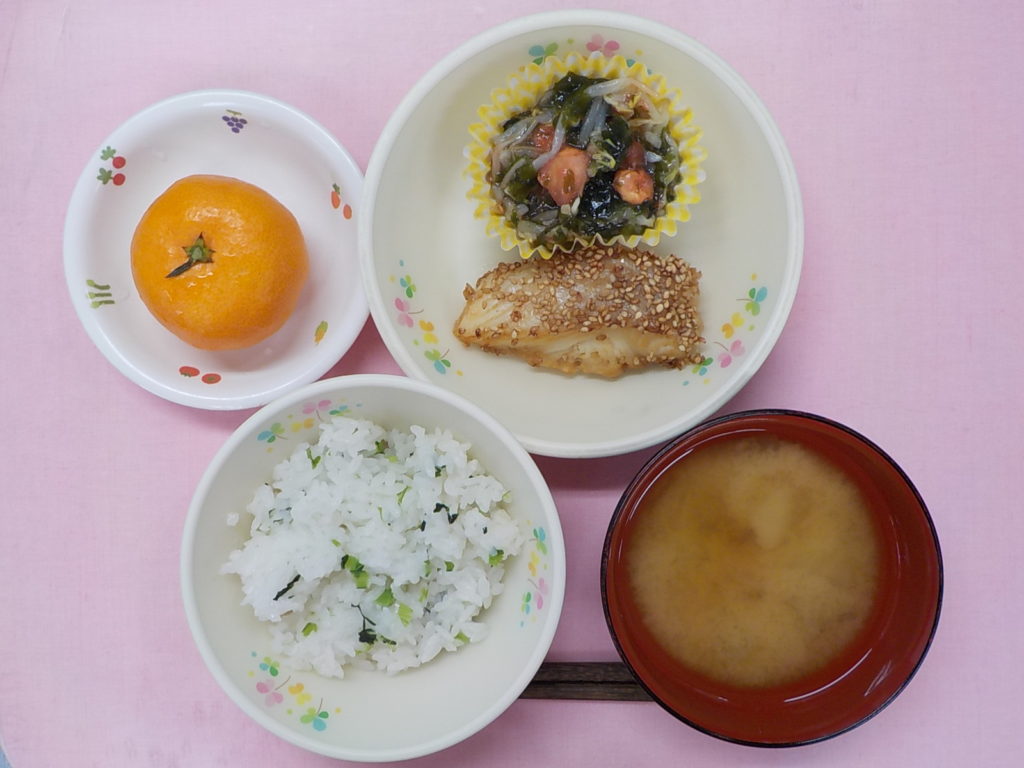 ホームきょうの給食 1/7 今日の給食 2022年1月7日 子どもたちが大好きな給食やおやつを毎日紹介しています! 【幼児食・乳児食】 昼食 七草ごはん みそ汁 かれいのごま焼き 和風サラダ みかん 3時のおやつ 牛乳 フルーツポンチ おせんべい 10時のおやつ(乳児のみ) 野菜ジュース