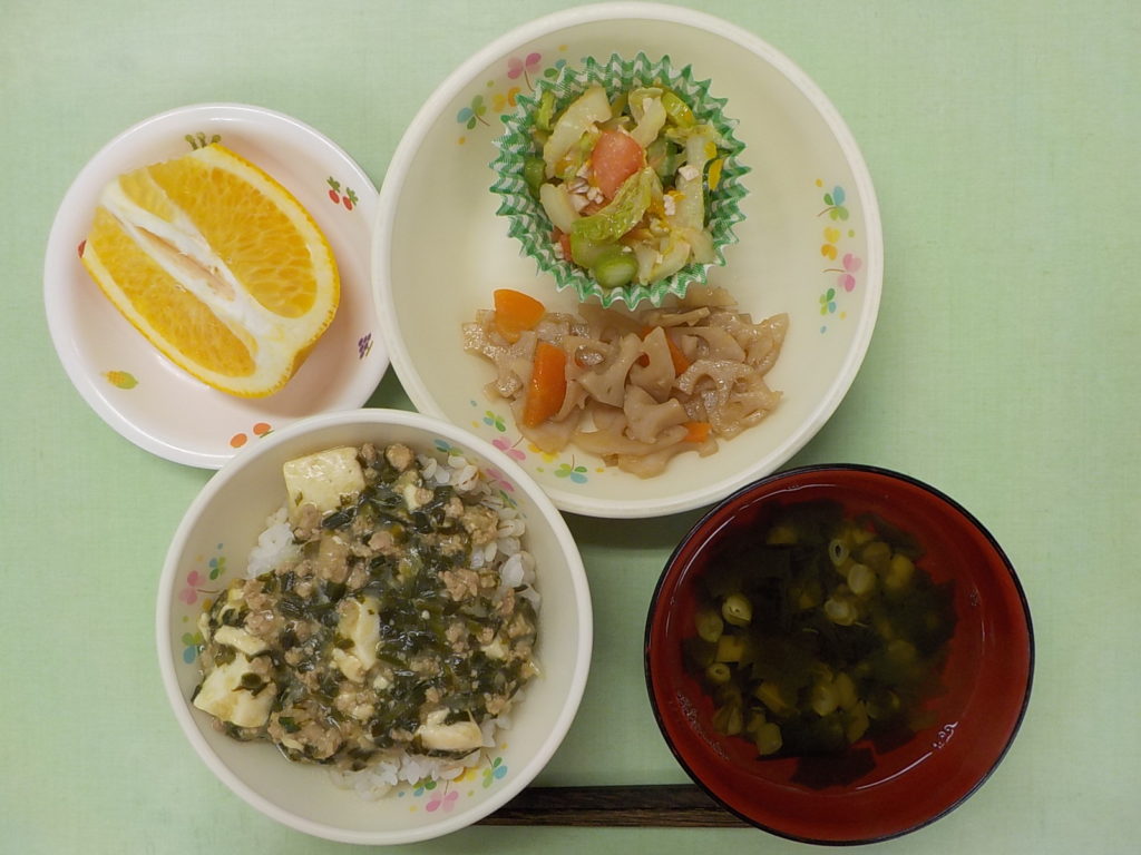 ホームきょうの給食 2/2 今日の給食 2022年2月2日 子どもたちが大好きな給食やおやつを毎日紹介しています! 【幼児食・乳児食】 昼食 マーボー麦丼 すまし汁 きんぴられんこん 白菜フレンチサラダ はっさく 3時のおやつ 野菜ジュース ポトフ 10時のおやつ(乳児のみ) 牛乳