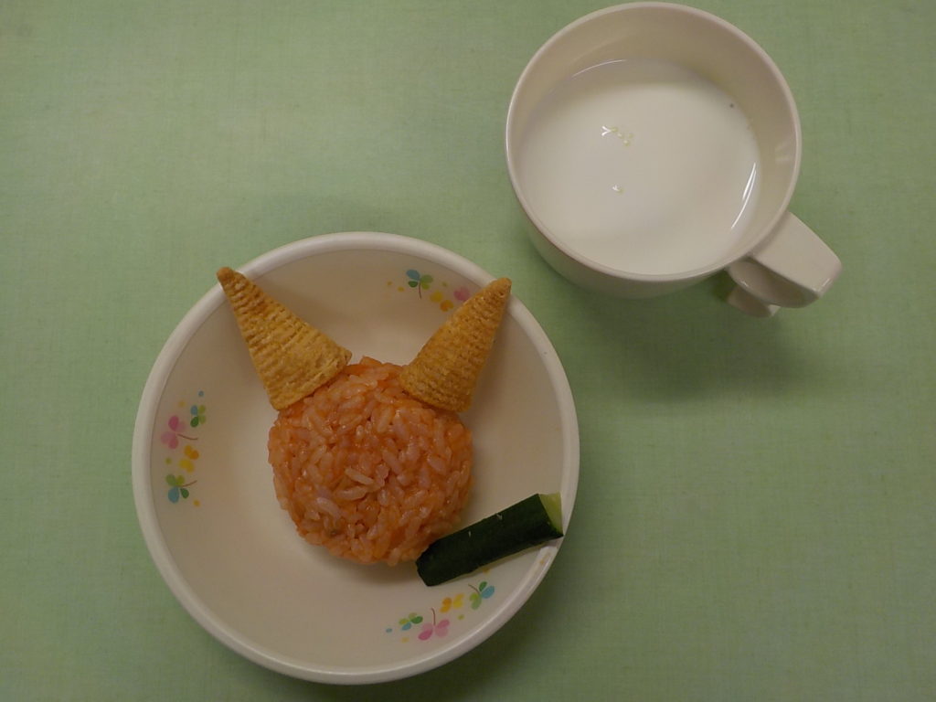 ホームきょうの給食 2/3 今日の給食 2022年2月3日 子どもたちが大好きな給食やおやつを毎日紹介しています! 【幼児食・乳児食】 昼食 ごはん きのこのスープ 魚のバーベキューソース ポテトサラダ いよかん 3時のおやつ 牛乳 鬼おにぎり スティック胡瓜 10時のおやつ(乳児のみ) 牛乳