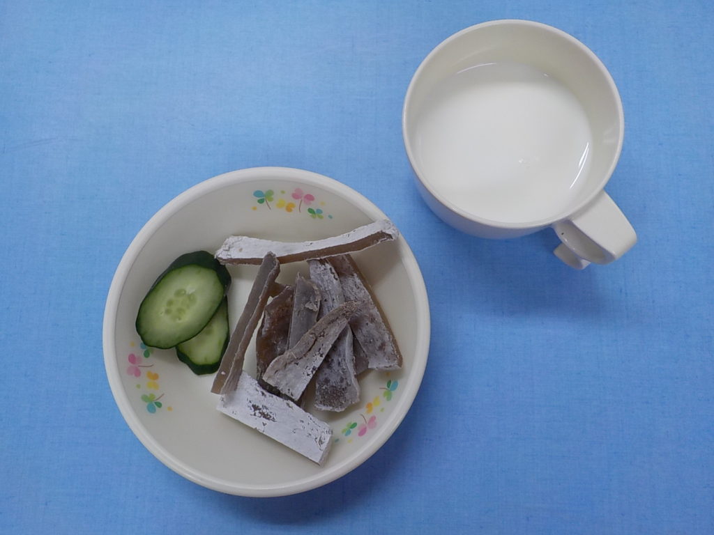 ホームきょうの給食 2/4 今日の給食 2022年2月4日 子どもたちが大好きな給食やおやつを毎日紹介しています! 【幼児食・乳児食】 昼食 菜飯 みそ汁 焼肉 豆腐サラダ はっさく 3時のおやつ 牛乳 干し芋 ぬか漬け 10時のおやつ(乳児のみ) 野菜ジュース