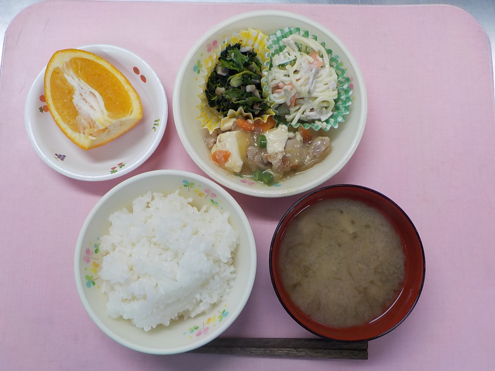 ホームきょうの給食 2/15 今日の給食 2022年2月15日 子どもたちが大好きな給食やおやつを毎日紹介しています! 【幼児食・乳児食】 昼食 ごはん みそ汁 肉豆腐 スパゲティサラダ おひたし いよかん 3時のおやつ 野菜ジュース 鶏ぞうすい 10時のおやつ(乳児のみ) 牛乳