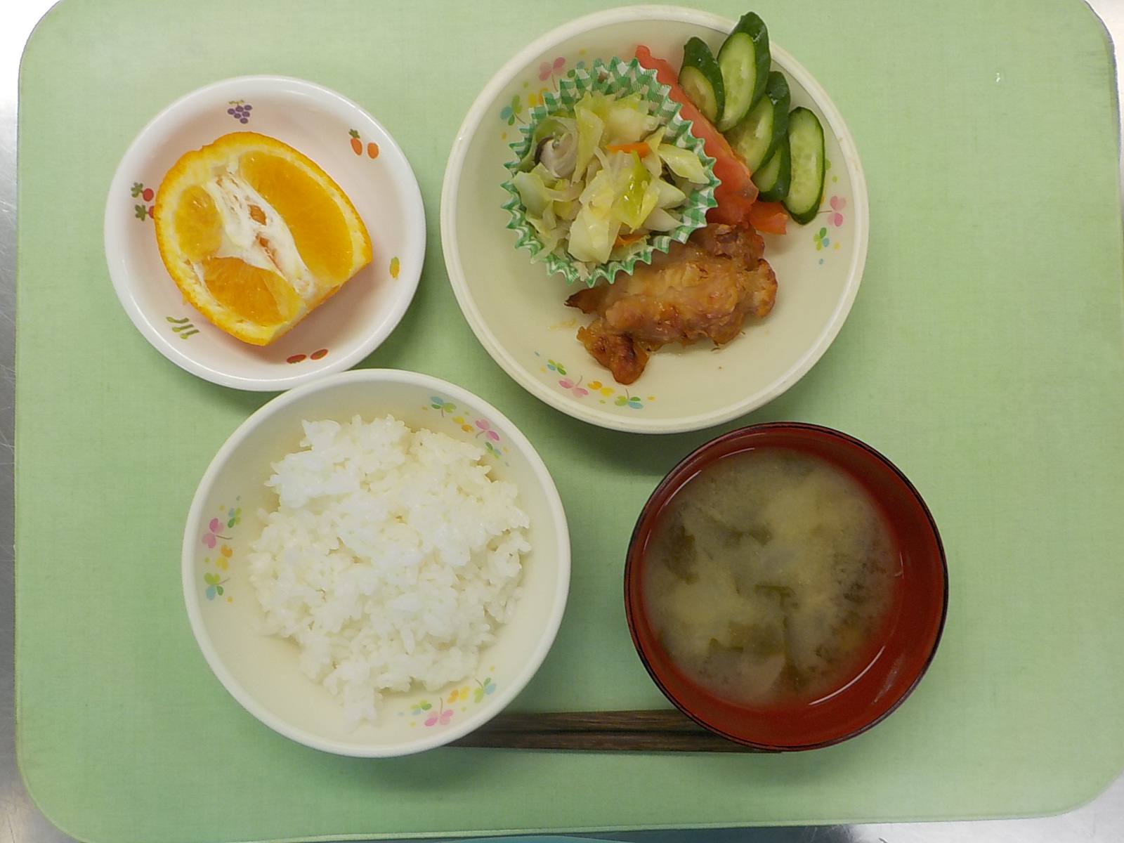 ホームきょうの給食 2/21 今日の給食 2022年2月21日 子どもたちが大好きな給食やおやつを毎日紹介しています! 【幼児食・乳児食】 昼食 ごはん みそ汁 からあげ 野菜ソテー ぬか漬け トマト いよかん 3時のおやつ 牛乳 こぎつねおにぎり 10時のおやつ(乳児のみ) 牛乳