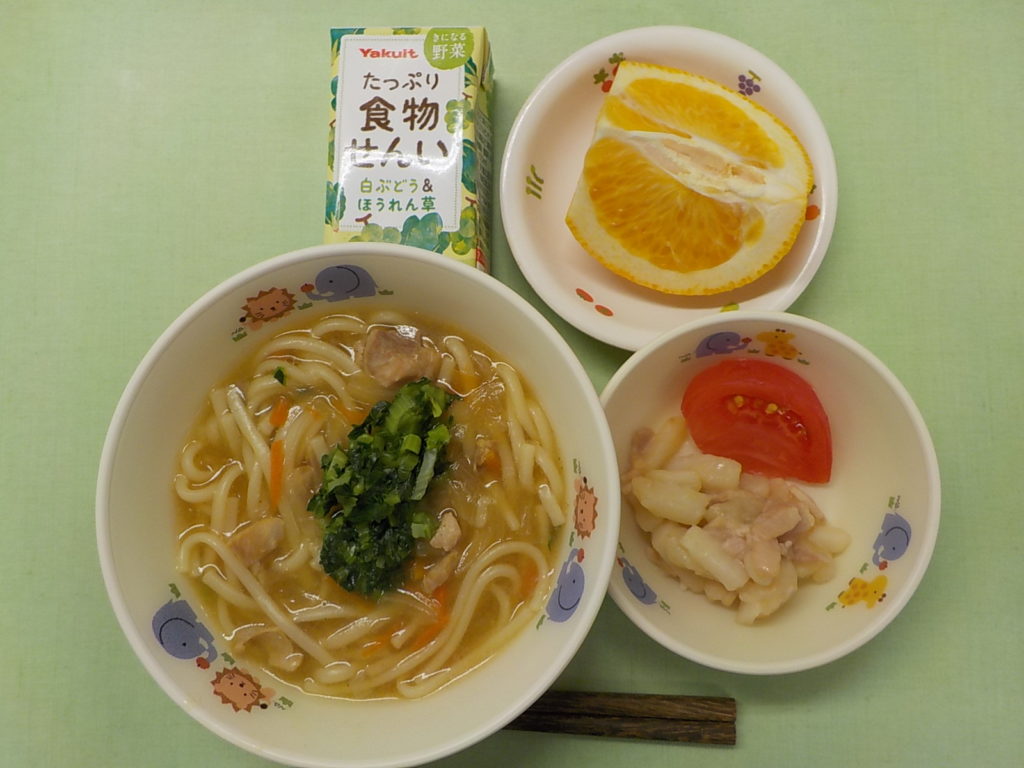 ホームきょうの給食 3/5 今日の給食 2022年3月5日 子どもたちが大好きな給食やおやつを毎日紹介しています! 【幼児食・乳児食】 昼食 鶏カレーうどん 根菜ソテー トマト 野菜ジュース はっさく 3時のおやつ 麦茶 夕焼けおにぎり 食べる小魚 10時のおやつ(乳児のみ) まめぴよ