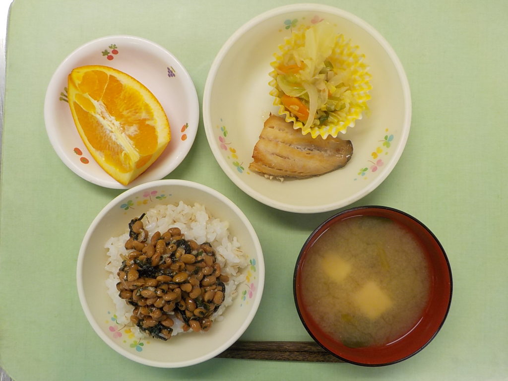 ホームきょうの給食 3/14 今日の給食 2022年3月14日 子どもたちが大好きな給食やおやつを毎日紹介しています! 【幼児食・乳児食】 昼食 納豆麦ごはん みそ汁 銀だらの照り焼き 野菜ソテー オレンジ 3時のおやつ 牛乳 そぼろごはん ぬか漬け 10時のおやつ(乳児のみ) 牛乳
