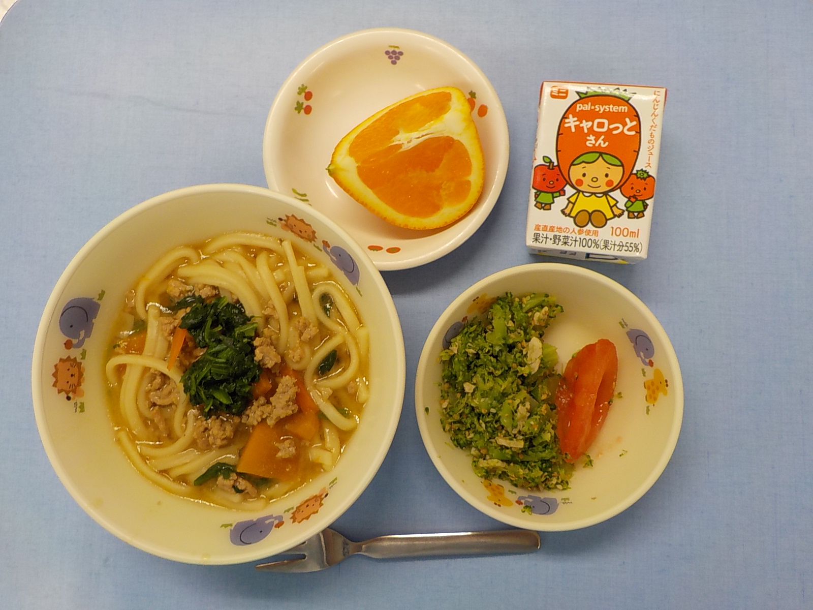 ホームきょうの給食 4/9 今日の給食 2022年4月9日 子どもたちが大好きな給食やおやつを毎日紹介しています! 【幼児食・乳児食】 昼食 ほうとううどん ごま和え トマト ネーブル キャロットジュース 3時のおやつ 麦茶 ミニきな粉まる ぬか漬け 10時のおやつ(乳児のみ) ジョア