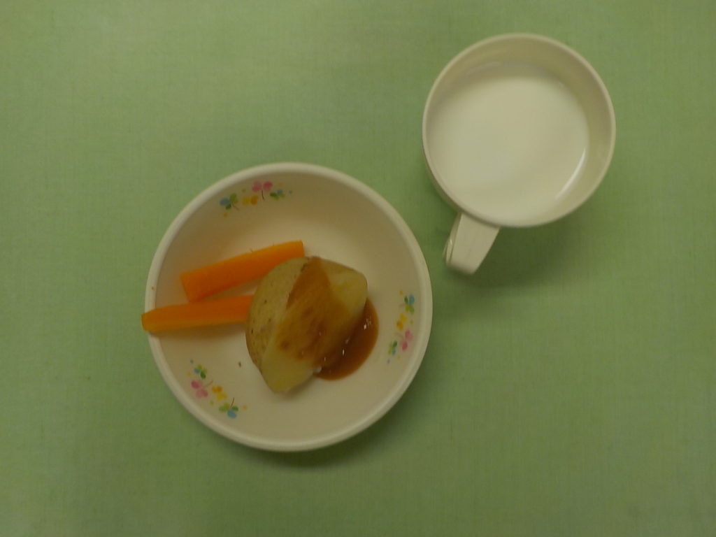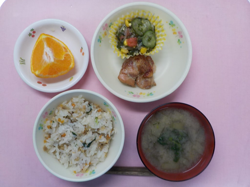 ホームきょうの給食 4/15 今日の給食 2022年4月15日 子どもたちが大好きな給食やおやつを毎日紹介しています! 【幼児食・乳児食】 昼食 五目ごはん みそ汁 鶏のくわ焼き 和風サラダ デコポン 3時のおやつ 牛乳 新じゃが田楽 スティック人参 10時のおやつ(乳児のみ) ジョア