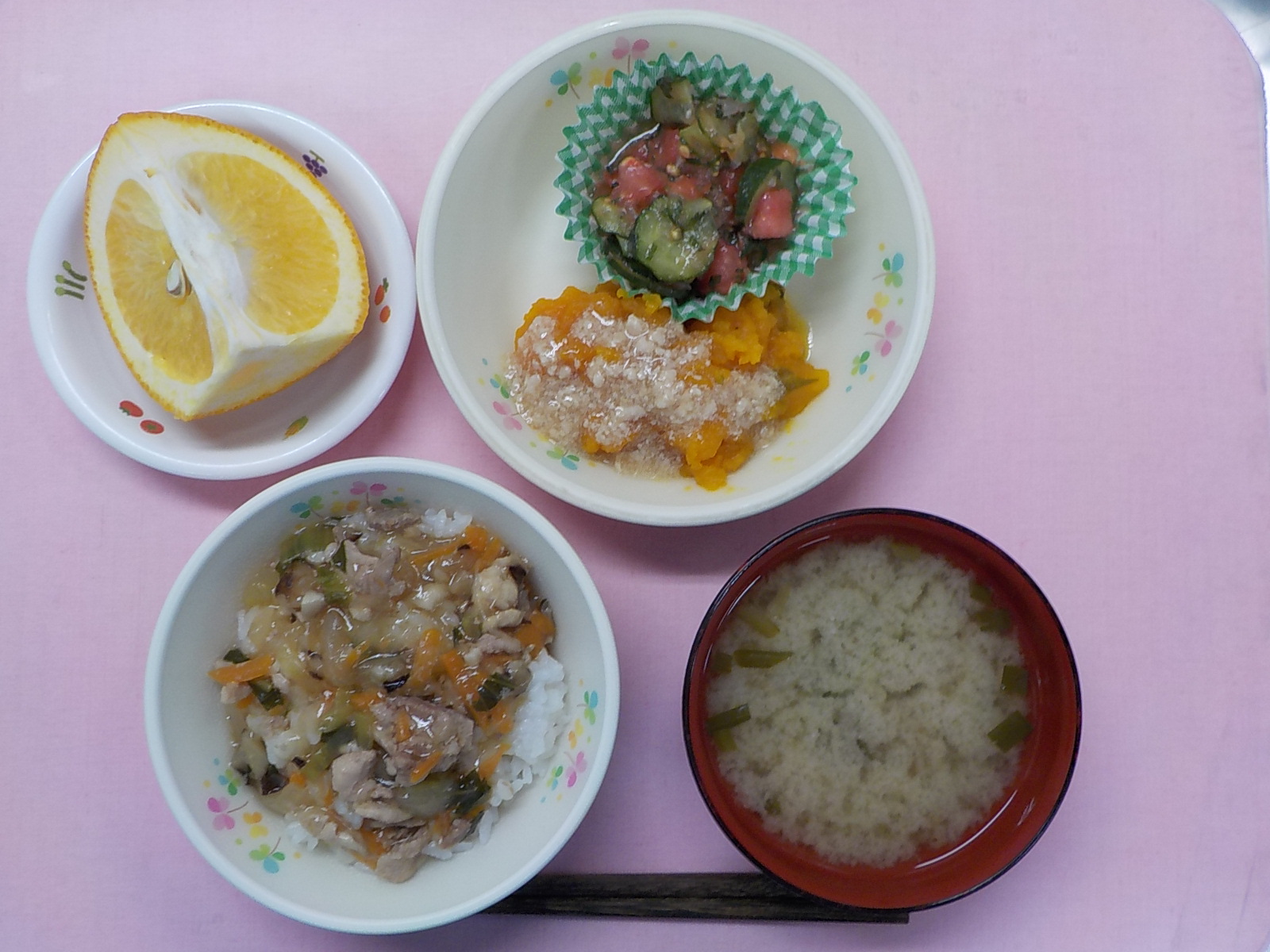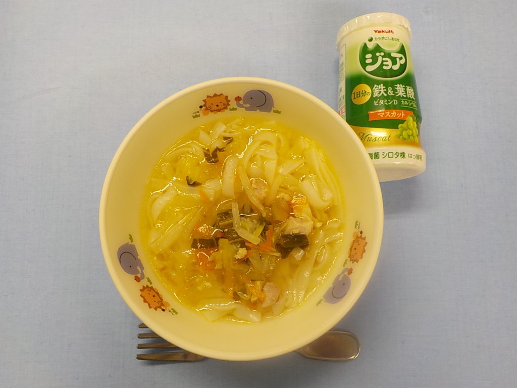 ホームきょうの給食 4/19 今日の給食 2022年4月19日 子どもたちが大好きな給食やおやつを毎日紹介しています! 【幼児食・乳児食】 昼食 あんかけ麦丼 みそ汁 南瓜のそぼろあん トマトサラダ 甘夏 3時のおやつ ジョア チキンフォー 10時のおやつ(乳児のみ) 牛乳