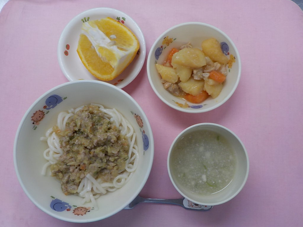 ホームきょうの給食 5/21 今日の給食 2022年5月21日 子どもたちが大好きな給食やおやつを毎日紹介しています! 【幼児食・乳児食】 昼食 肉みそうどん くずし豆腐のスープ 野菜の煮物 甘夏 3時のおやつ 麦茶 ハムピラフ ぬか漬け 10時のおやつ(乳児のみ) ジョア