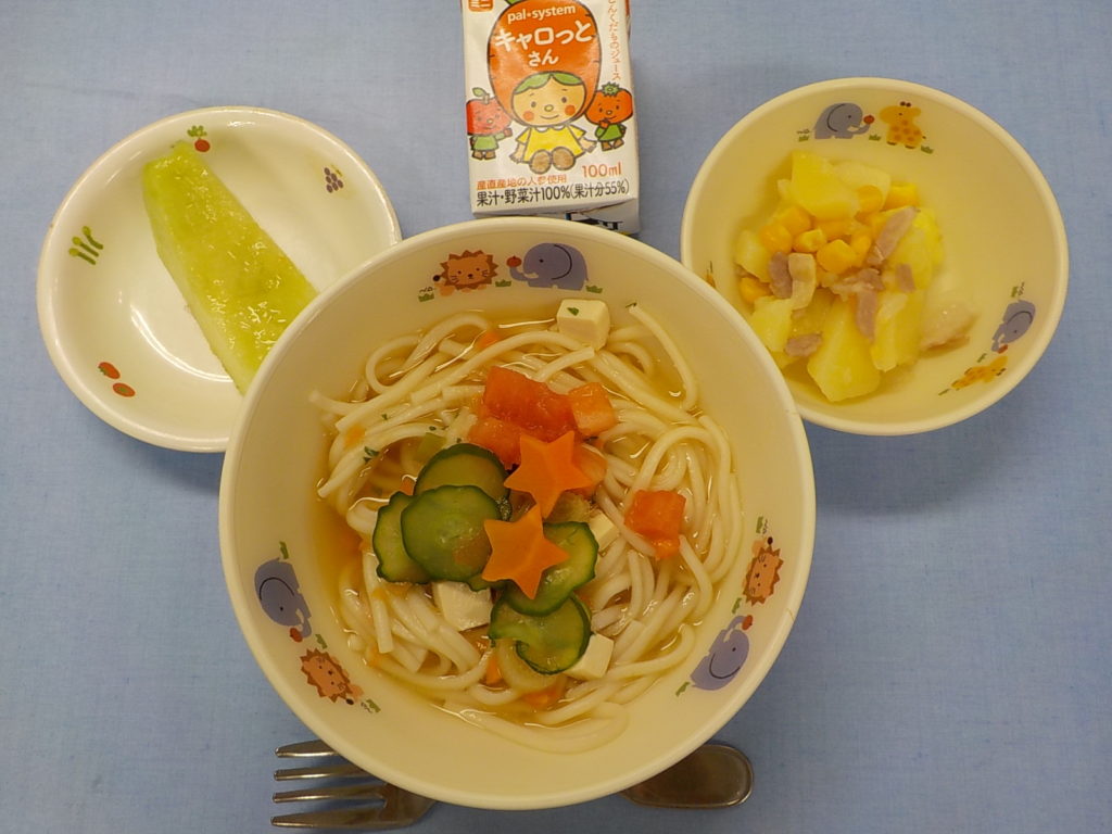 ホームきょうの給食 5/28 今日の給食 2022年5月28日 子どもたちが大好きな給食やおやつを毎日紹介しています! 【幼児食・乳児食】 昼食 冷や汁うどん ジャーマンポテトサラダ キャロットジュース メロン 3時のおやつ まめぴよ トマトスープライス 10時のおやつ(乳児のみ) 麦茶
