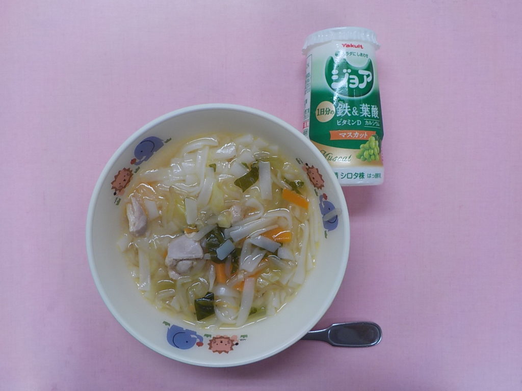 ホームきょうの給食 6/21 今日の給食 2022年6月21日 子どもたちが大好きな給食やおやつを毎日紹介しています! 【幼児食・乳児食】 昼食 ごはん みそ汁 焼き魚 豚肉れんこん かぶの塩こうじ和え メロン 3時のおやつ ジョア チキンフォー 10時のおやつ(乳児のみ) 牛乳