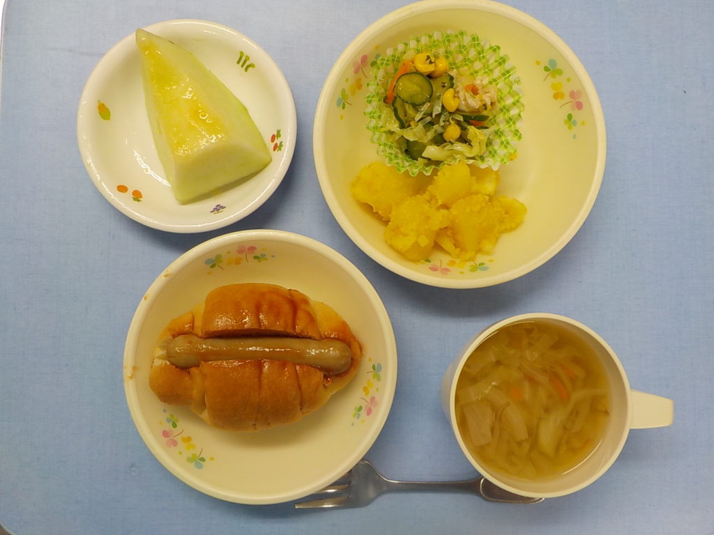 ホームきょうの給食 7/14 今日の給食 2022年7月14日 子どもたちが大好きな給食やおやつを毎日紹介しています! 【幼児食・乳児食】 昼食 ホットドック ベジタブルスープ スタミナサラダ カレーポテト メロン 3時のおやつ 牛乳 わかめおにぎり 10時のおやつ(乳児のみ) 野菜ジュース