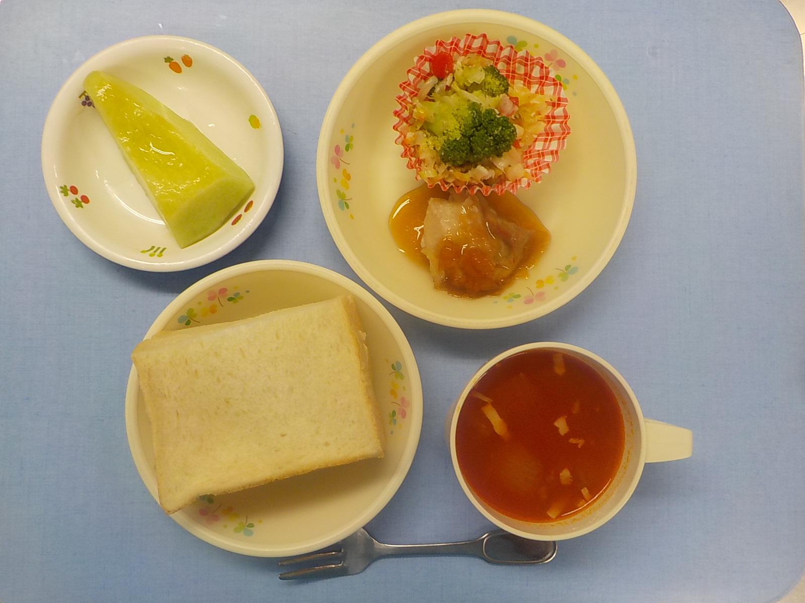 ホームきょうの給食 7/28 今日の給食 2022年7月28日 子どもたちが大好きな給食やおやつを毎日紹介しています! 【幼児食・乳児食】 昼食 バターサンド ミネストローネ チキンのマーマレード煮 ブロッコリーのサラダ メロン 3時のおやつ 牛乳 夏おにぎり ぬか漬け 10時のおやつ(乳児のみ) 牛乳