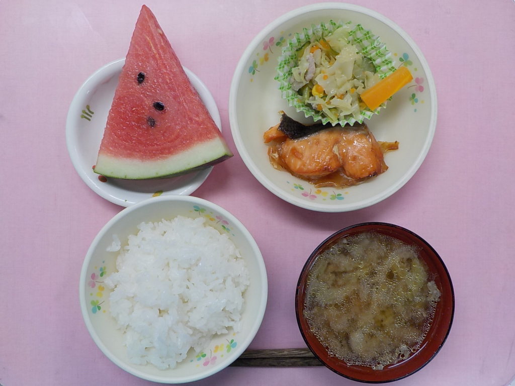 ホームきょうの給食 8/19 今日の給食 2022年8月19日 子どもたちが大好きな給食やおやつを毎日紹介しています! 【幼児食・乳児食】 昼食 ごはん 田舎汁 鮭の竜田焼き スタミナサラダ スティック人参 すいか 3時のおやつ 牛乳 あんずサンド 10時のおやつ(乳児のみ) 牛乳