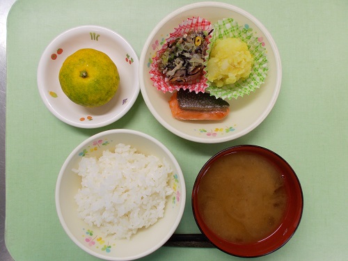 ホームきょうの給食 10/17 今日の給食 2022年10月17日 子どもたちが大好きな給食やおやつを毎日紹介しています! 【幼児食・乳児食】 昼食 ごはん みそ汁 焼魚 カルカルサラダ カレーポテト みかん 3時のおやつ 牛乳 あんぱん 10時のおやつ(乳児のみ) 野菜ジュース
