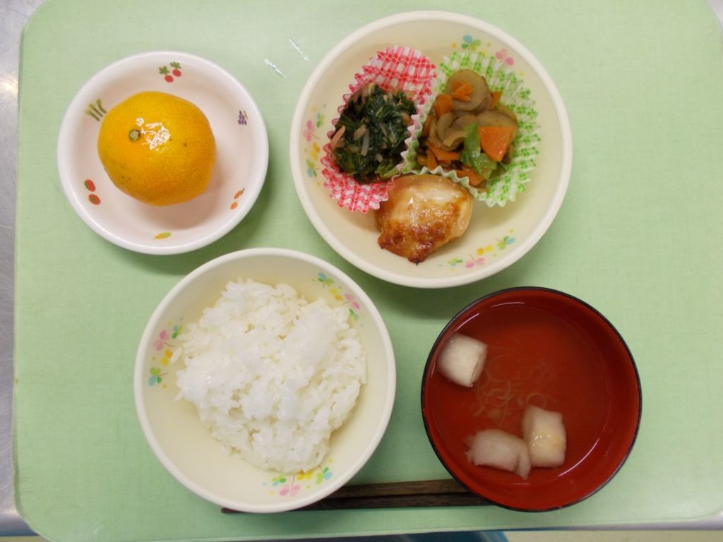 ホームきょうの給食 11/7 今日の給食 2022年11月7日 子どもたちが大好きな給食やおやつを毎日紹介しています! 【幼児食・乳児食】 昼食 ごはん すまし汁 鶏肉のくわ焼き ごぼうと人参の炒め煮 磯辺和え みかん 3時のおやつ 牛乳 インディアンライス 10時のおやつ(乳児のみ) 牛乳