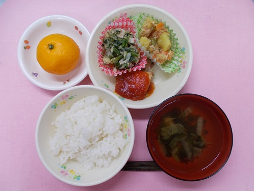 ホームきょうの給食 11/11 今日の給食 2022年11月11日 子どもたちが大好きな給食やおやつを毎日紹介しています! 【幼児食・乳児食】 昼食 ごはん すまし汁 カンゼンティーポー 切干大根サラダ ほっこり白和え みかん 3時のおやつ 牛乳 ツナサンド 10時のおやつ(乳児のみ) ジョア
