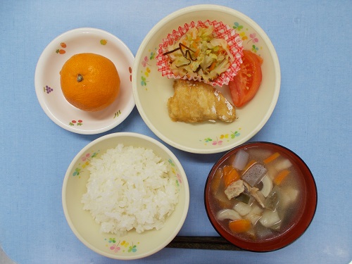 ホームきょうの給食 12/16 今日の給食 2022年12月16日 子どもたちが大好きな給食やおやつを毎日紹介しています! 【幼児食・乳児食】 昼食 ごはん おでん かじきの竜田焼き キャベツのこんぶ和え トマト みかん 3時のおやつ 牛乳 ジャムサンド 10時のおやつ(乳児のみ) 牛乳