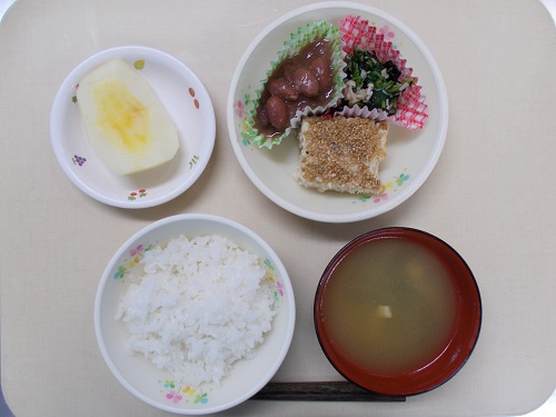 ホームきょうの給食 12/21 今日の給食 2022年12月21日 子どもたちが大好きな給食やおやつを毎日紹介しています! 【幼児食・乳児食】 昼食 ごはん みそ汁 松風焼き 磯辺和え 金時煮豆 りんご 3時のおやつ ジョア チキンフォー 10時のおやつ(乳児のみ) 牛乳