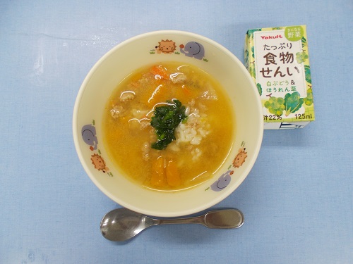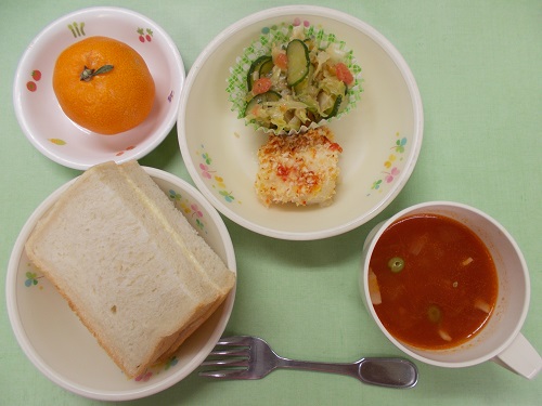 ホームきょうの給食 12/22 今日の給食 2022年12月22日 子どもたちが大好きな給食やおやつを毎日紹介しています! 【幼児食・乳児食】 昼食 バターサンド トマトスープ 魚のカラフル焼き コンビネーションサラダ みかん 3時のおやつ 野菜ジュース みそおじや 10時のおやつ(乳児のみ) 牛乳
