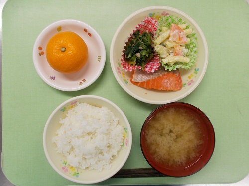ホームきょうの給食 12/26 今日の給食 2022年12月26日 子どもたちが大好きな給食やおやつを毎日紹介しています! 【幼児食・乳児食】 昼食 ごはん みそ汁 焼魚 マカロニサラダ 小松菜のおひたし みかん 3時のおやつ 牛乳 たくあんおにぎり ぬか漬け 10時のおやつ(乳児のみ) 牛乳
