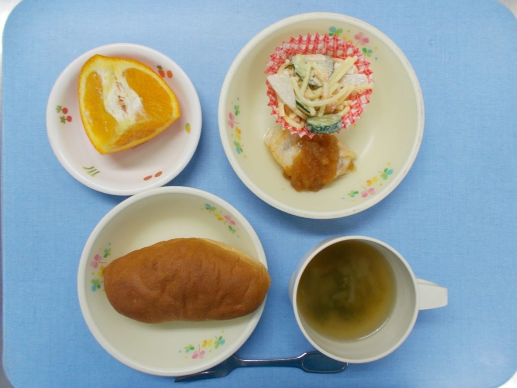 ホームきょうの給食 2/2今日の給食 2023年2月2日 子どもたちが大好きな給食やおやつを毎日紹介しています! 【幼児食・乳児食】 昼食 おさつパン きのこのスープ 魚のバーベキューソース スパゲティーサラダ いよかん 3時のおやつ 牛乳 鮭茶漬け 10時のおやつ(乳児のみ) 牛乳