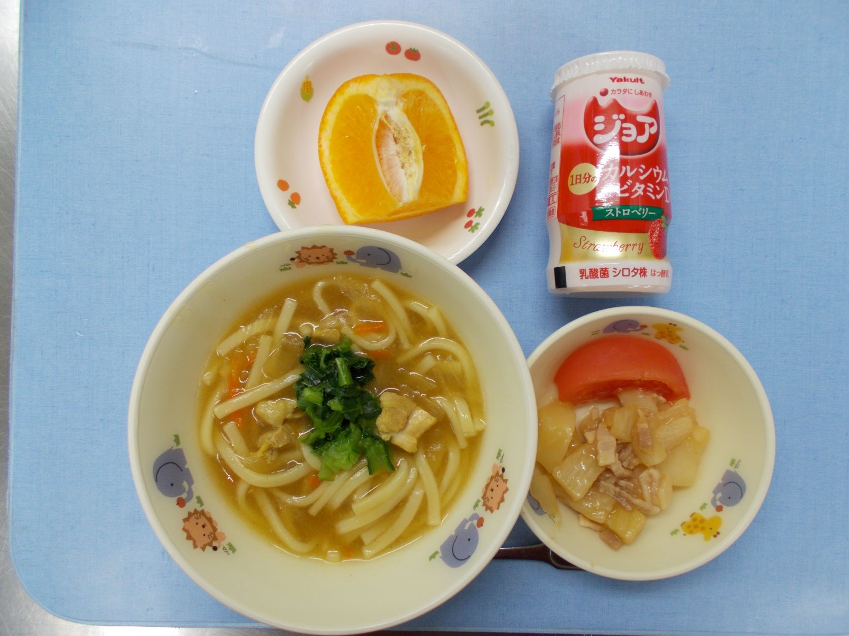 ホームきょうの給食 ○/○今日の給食下書き 2023年3月4日 子どもたちが大好きな給食やおやつを毎日紹介しています! 【幼児食・乳児食】 昼食 鶏カレーうどん (乳:かしわうどん) 根菜ソテー トマト ジョア いよかん 3時のおやつ 麦茶 しらすおにぎり ぬか漬け 10時のおやつ(乳児のみ) 野菜ジュース