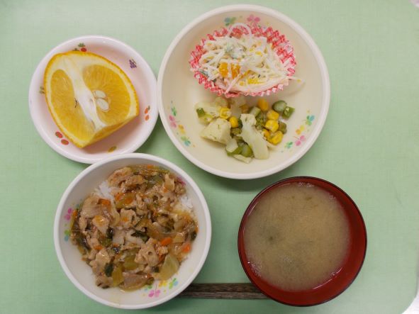 ホームきょうの給食 3/6 今日の給食 2023年3月6日 子どもたちが大好きな給食やおやつを毎日紹介しています! 【幼児食・乳児食】 昼食 あんかけ麦丼 みそ汁 アスパラコーンソテー 春雨サラダ 甘夏 3時のおやつ 牛乳 ベイクドパン 10時のおやつ(乳児のみ) ジョア