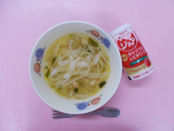 ホームきょうの給食 3/15 今日の給食 2023年3月15日 子どもたちが大好きな給食やおやつを毎日紹介しています! 【幼児食・乳児食】 昼食 ごはん みそ汁 油淋鶏(ユーリンチー) 豚肉れんこん もやしの中華和え いちご 3時のおやつ ジョア チキンフォー 10時のおやつ(乳児のみ) 牛乳