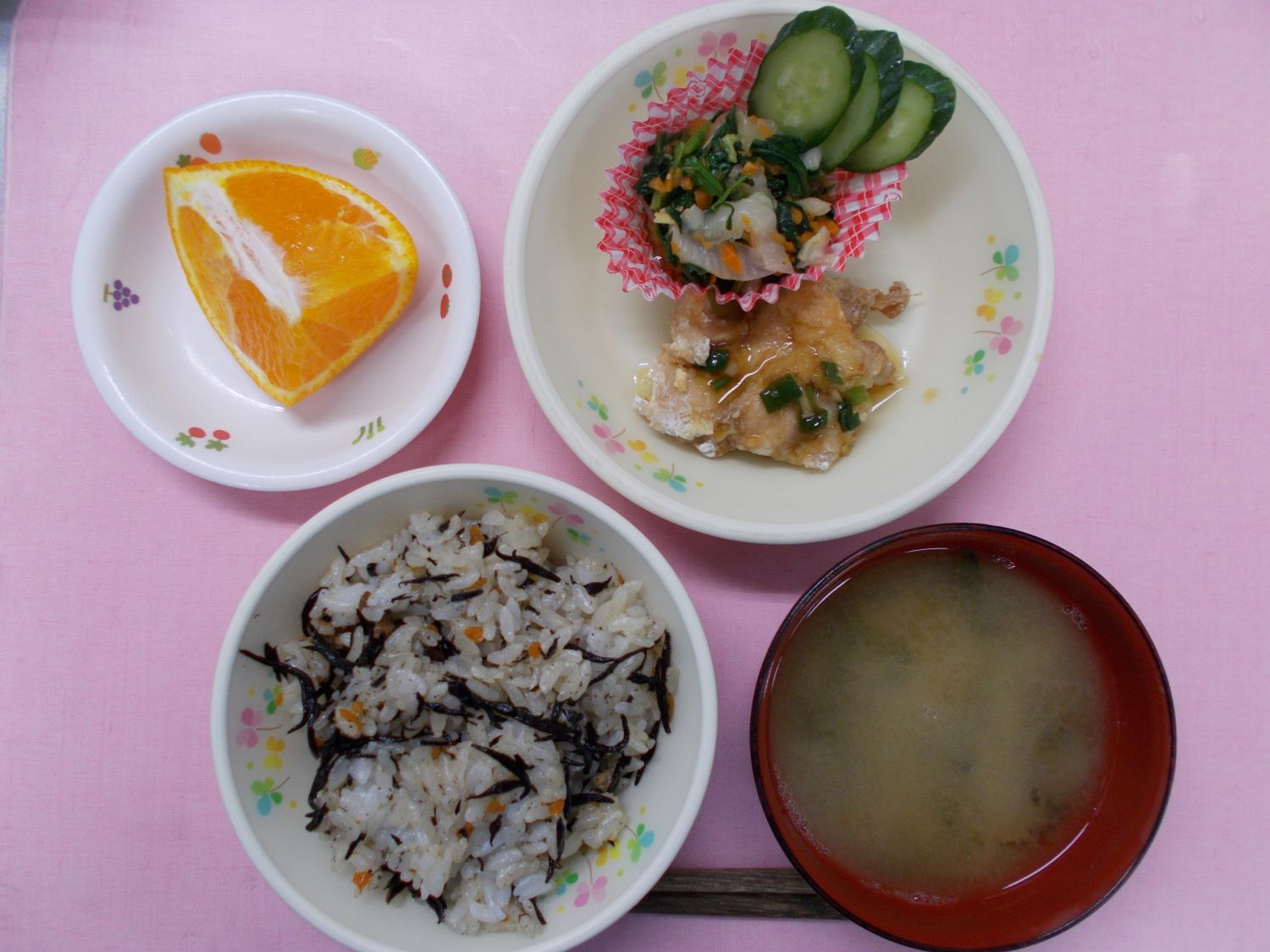 ホームきょうの給食 4/14 今日の給食 2023年4月14日 子どもたちが大好きな給食やおやつを毎日紹介しています! 【幼児食・乳児食】 昼食 ひじきごはん みそ汁 油淋鶏 ほうれん草の和え物 ぬか漬け デコポン 献立変更 菜の花の和え物→ほうれん草の和え物 3時のおやつ 牛乳 カルピスゼリー おせんべい 10時のおやつ(乳児のみ) 牛乳