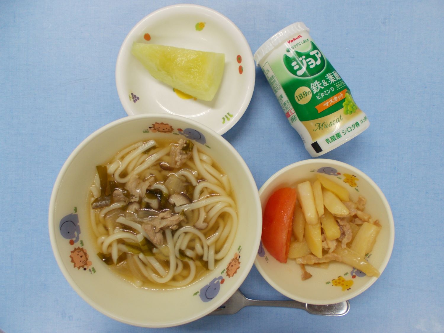 ホームきょうの給食 6/17 今日の給食 2023年6月17日 子どもたちが大好きな給食やおやつを毎日紹介しています! 【幼児食・乳児食】 昼食 肉わかめうどん 根菜ソテー トマト ジョア メロン 3時のおやつ 麦茶 そぼろおにぎり 食べる小魚 10時のおやつ(乳児のみ) 野菜ジュース