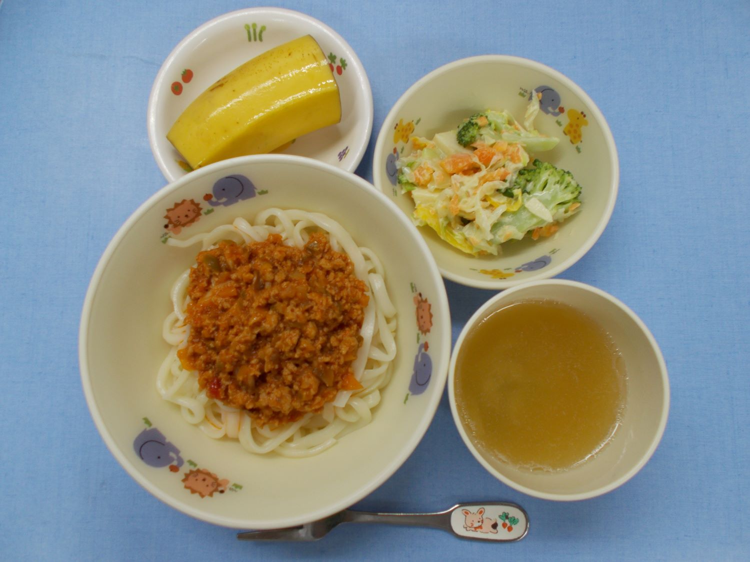 ホームきょうの給食 7/1 今日の給食 2023年7月1日 子どもたちが大好きな給食やおやつを毎日紹介しています! 【幼児食・乳児食】 昼食 ミートソース オニオンスープ キャベツとりんごのサラダ バナナ 3時のおやつ 野菜ジュース お茶漬け 食べる小魚 10時のおやつ(乳児のみ) ジョア