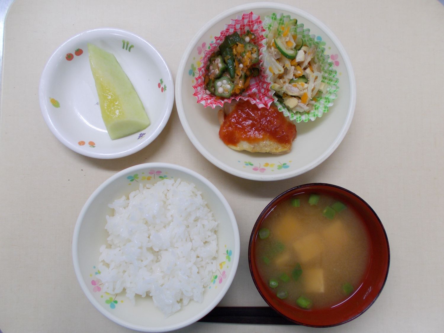 ホームきょうの給食 7/18 今日の給食 2023年7月18日 子どもたちが大好きな給食やおやつを毎日紹介しています! 【幼児食・乳児食】 昼食 ごはん みそ汁 カンゼンティーポー 五目和え おくらのおひたし メロン 3時のおやつ 牛乳 わかめおにぎり ぬか漬け 10時のおやつ(乳児のみ) ジョア