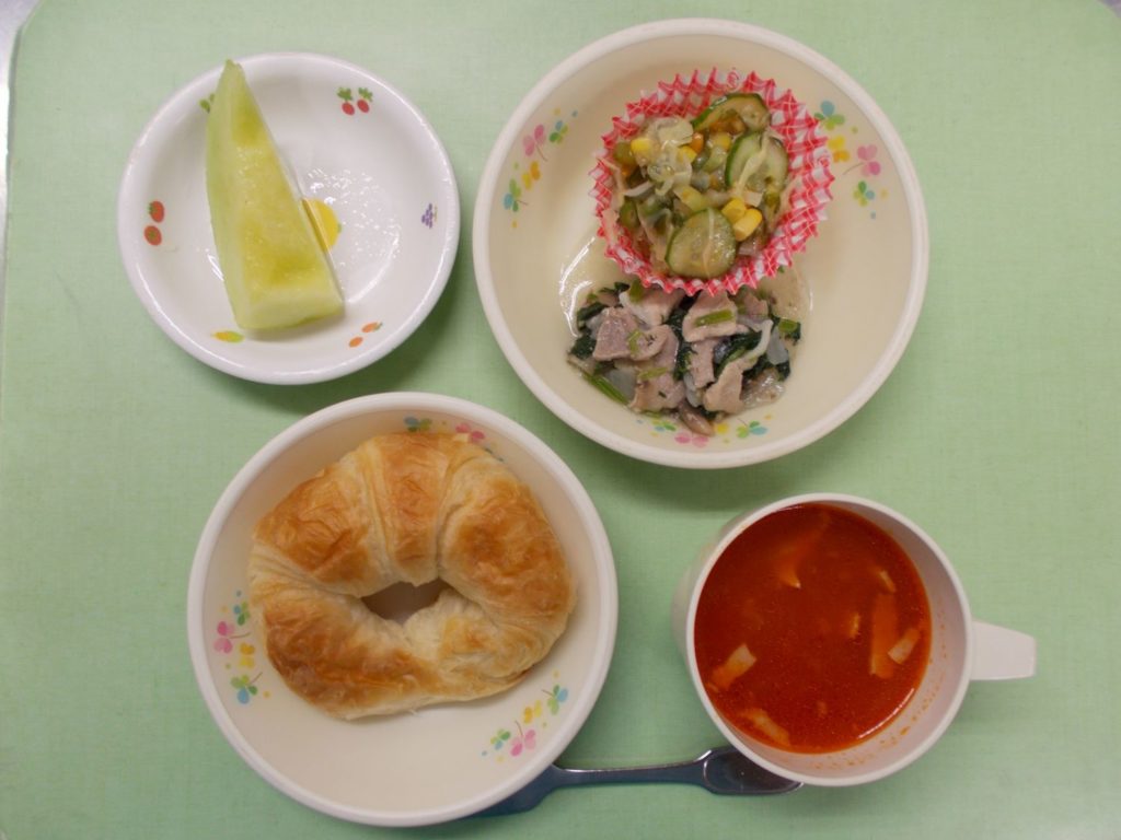 ホームきょうの給食 7/20 今日の給食 2023年7月20日 子どもたちが大好きな給食やおやつを毎日紹介しています! 【幼児食・乳児食】 昼食 クロワッサン ミネストローネ 豚肉の洋風煮込み コンビネーションサラダ メロン 3時のおやつ ジョア みそ雑炊 10時のおやつ(乳児のみ) 牛乳
