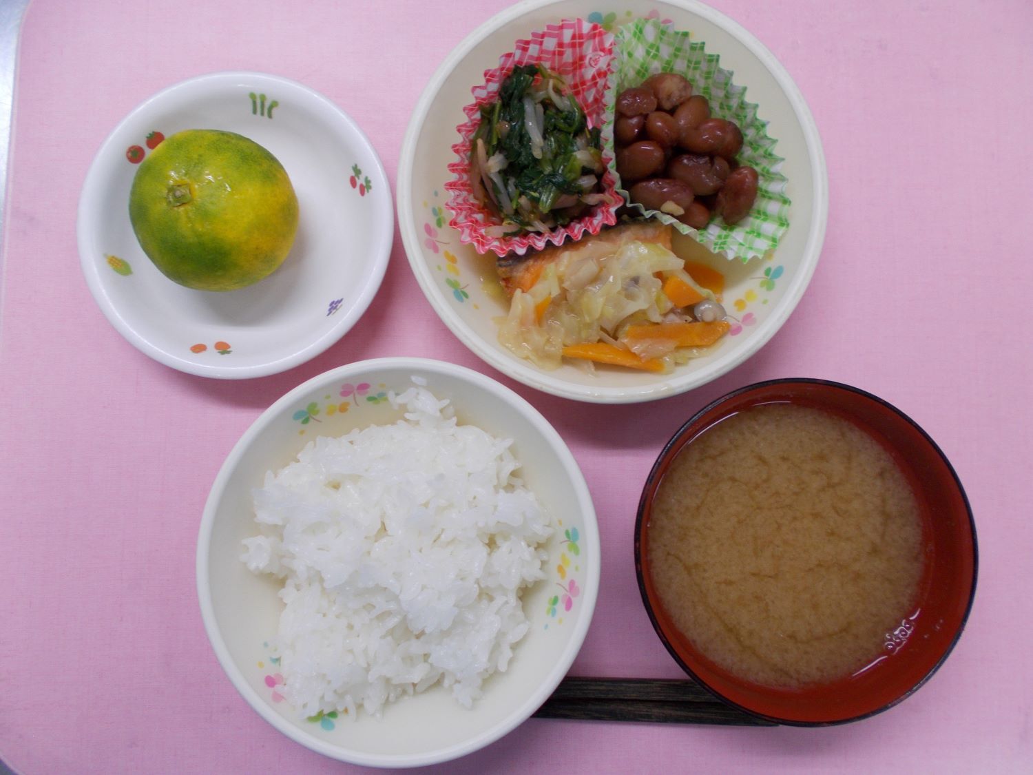 ホームきょうの給食 9/15 今日の給食 2023年9月15日 子どもたちが大好きな給食やおやつを毎日紹介しています! 【幼児食・乳児食】 昼食 ごはん みそ汁 鮭のちゃんちゃん焼き 磯辺和え 金時煮豆 みかん 3時のおやつ 牛乳 とうもろこし 10時のおやつ(乳児のみ) 野菜ジュース