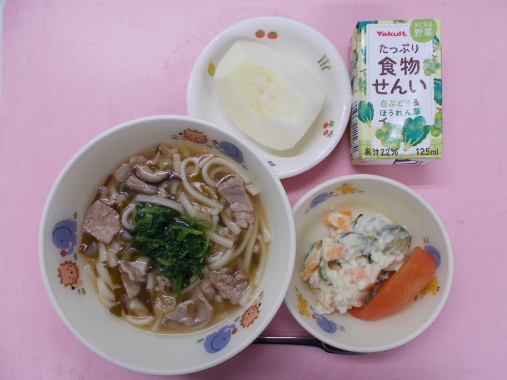 ホームきょうの給食 9/16今日の給食 2023年9月16日 子どもたちが大好きな給食やおやつを毎日紹介しています! 【幼児食・乳児食】 昼食 五目うどん ポテトサラダ トマト 野菜ジュース りんご 3時のおやつ 麦茶 そぼろおにぎり 食べる小魚 10時のおやつ(乳児のみ) ジョア