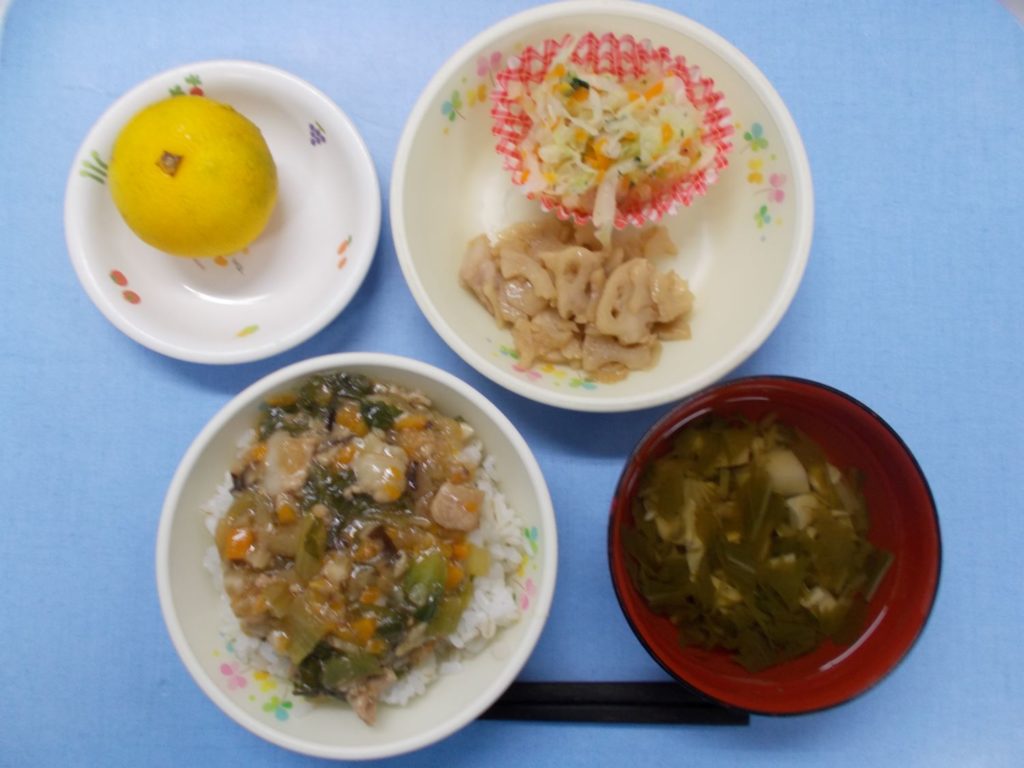 ホームきょうの給食 10/4今日の給食 2023年10月4日 子どもたちが大好きな給食やおやつを毎日紹介しています! 【幼児食・乳児食】 昼食 あんかけ麦丼(乳:あんかけ丼) すまし汁 豚肉れんこん 塩もみ野菜 みかん 3時のおやつ 牛乳 ピザトースト 10時のおやつ(乳児のみ) 牛乳