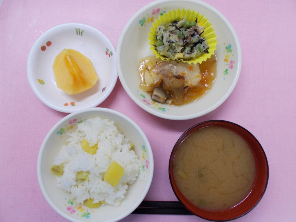 ホームきょうの給食 10/17今日の給食 2023年10月17日 子どもたちが大好きな給食やおやつを毎日紹介しています! 【幼児食・乳児食】 昼食 さつまいもごはん みそ汁 かれいの甘酢あんかけ カルカルサラダ 柿 3時のおやつ 牛乳 チャーハン ぬか漬け 10時のおやつ(乳児のみ) ジョア