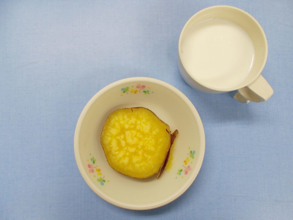 ホームきょうの給食 10/27今日の給食 2023年10月27日2023年10月28日 子どもたちが大好きな給食やおやつを毎日紹介しています! 【幼児食・乳児食】 昼食 中華風麦丼(乳:中華風丼) すまし汁 豆腐サラダ ブロッコリーの和え物 みかん 3時のおやつ 牛乳 焼き芋 ↓ 幼児クラスはみんなで作った スウィートポテト♡ 10時のおやつ(乳児のみ) 牛乳