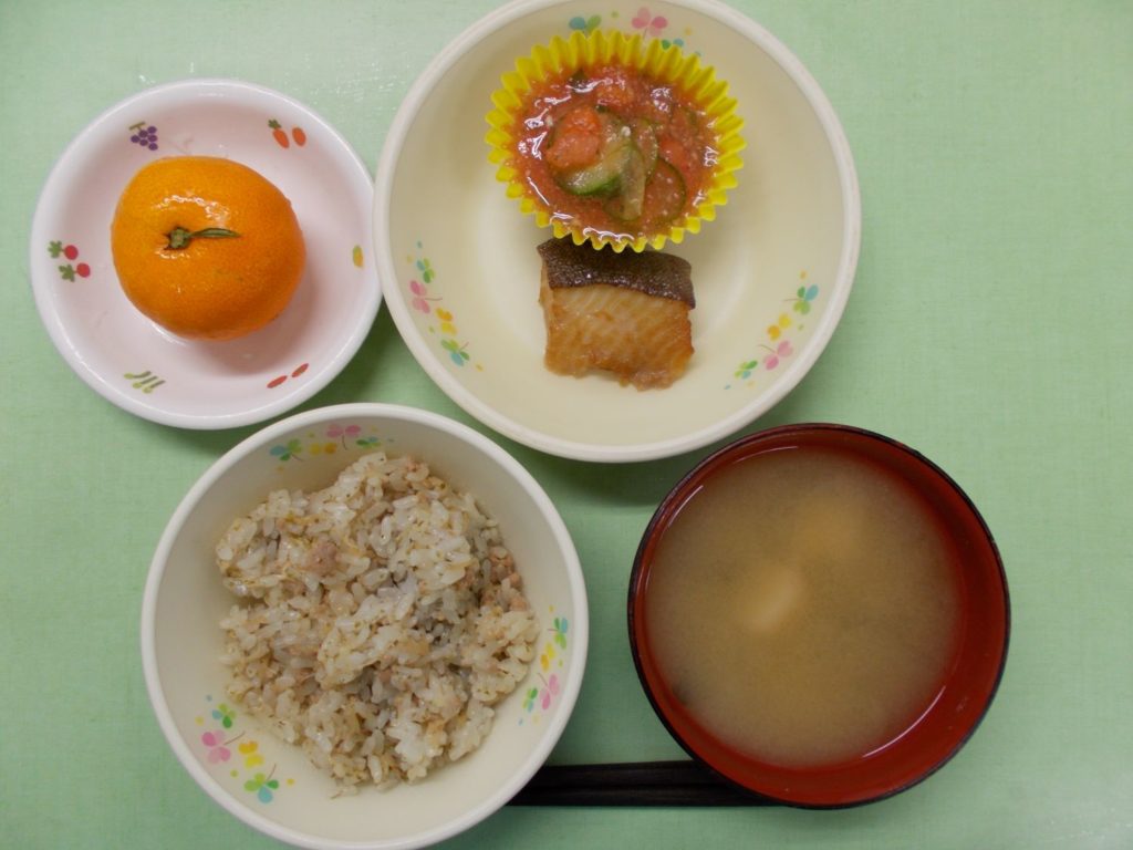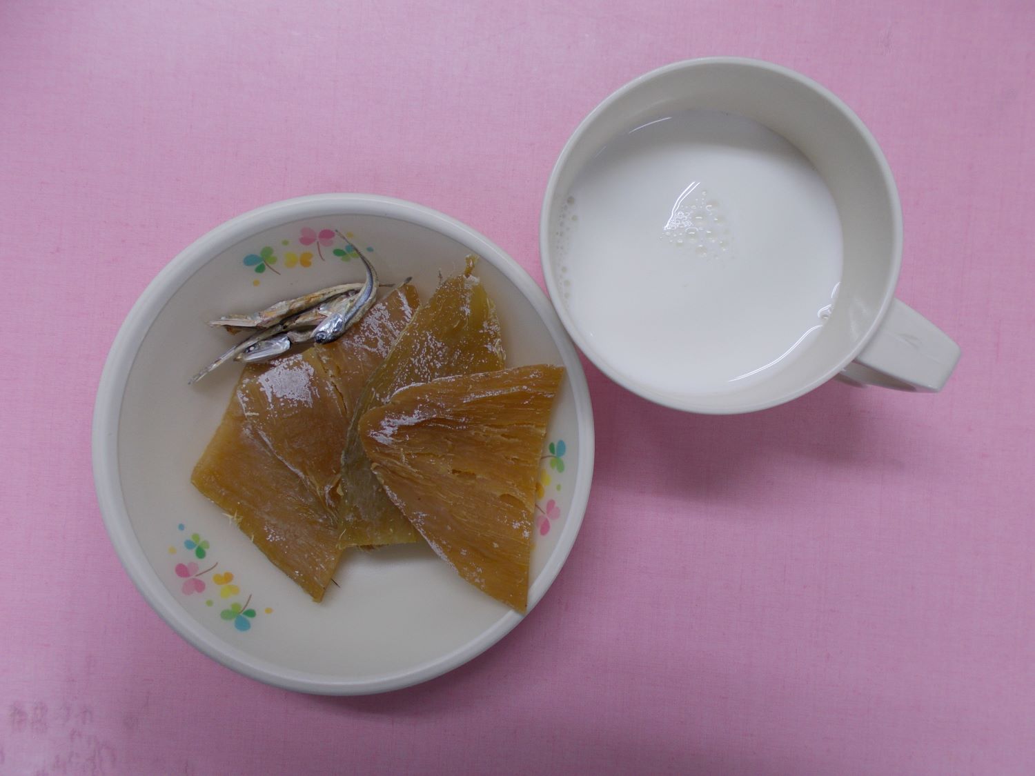 ホームきょうの給食 11/20今日の給食 2023年11月20日 子どもたちが大好きな給食やおやつを毎日紹介しています! 【幼児食・乳児食】 昼食 豚肉とえのきのごはん みそ汁 銀だらの照り焼き トマトの塩こうじ和え みかん 3時のおやつ 牛乳 干し芋 食べる小魚 10時のおやつ(乳児のみ) 牛乳