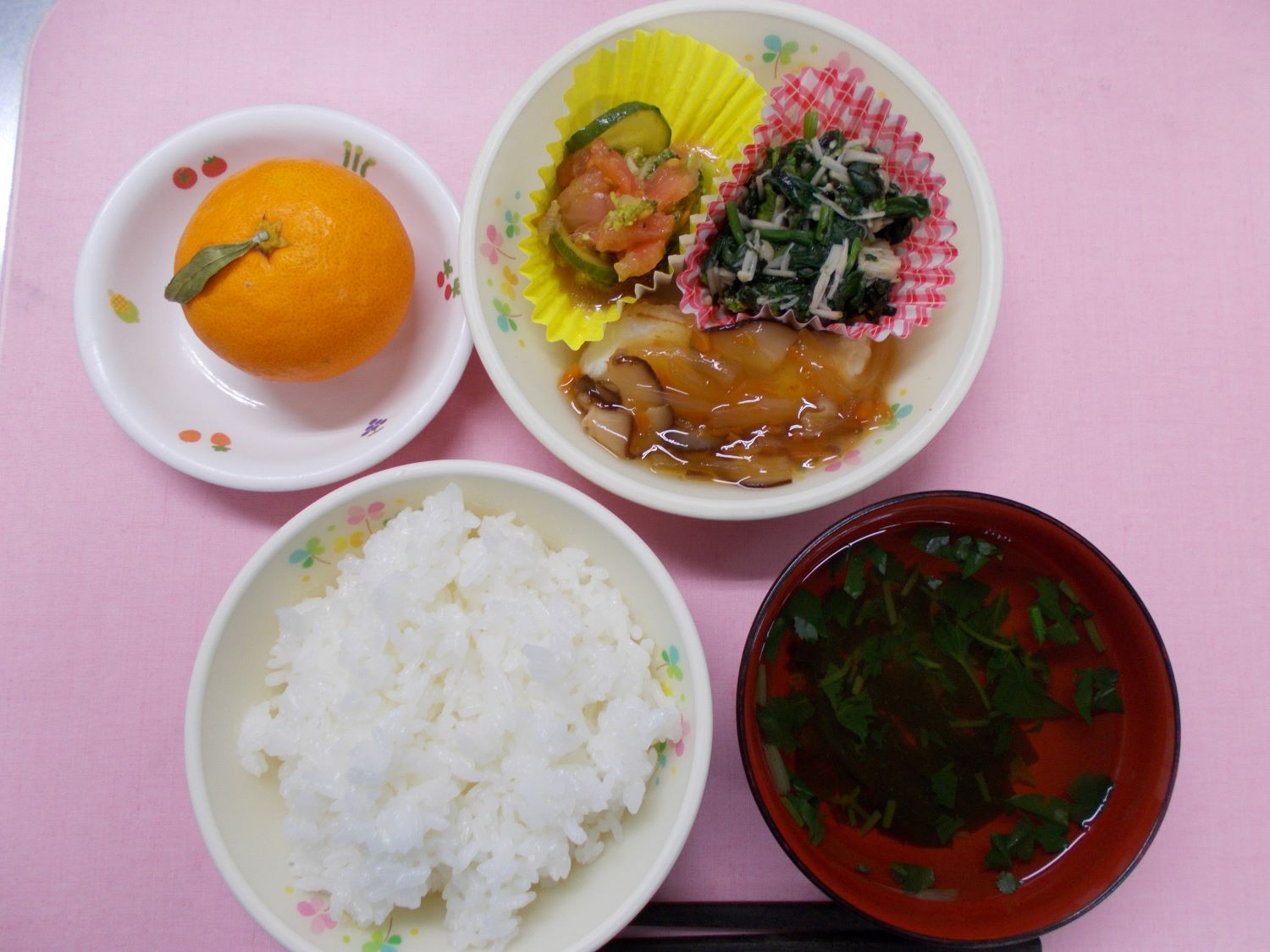 ホームきょうの給食 12/15 今日の給食 2023年12月15日 子どもたちが大好きな給食やおやつを毎日紹介しています! 【幼児食・乳児食】 昼食 ごはん すまし汁 かれいの甘酢あんかけ 磯辺和え トマトのサラダ みかん 3時のおやつ 牛乳 さつまいも蒸しパン 10時のおやつ(乳児のみ) ジョア