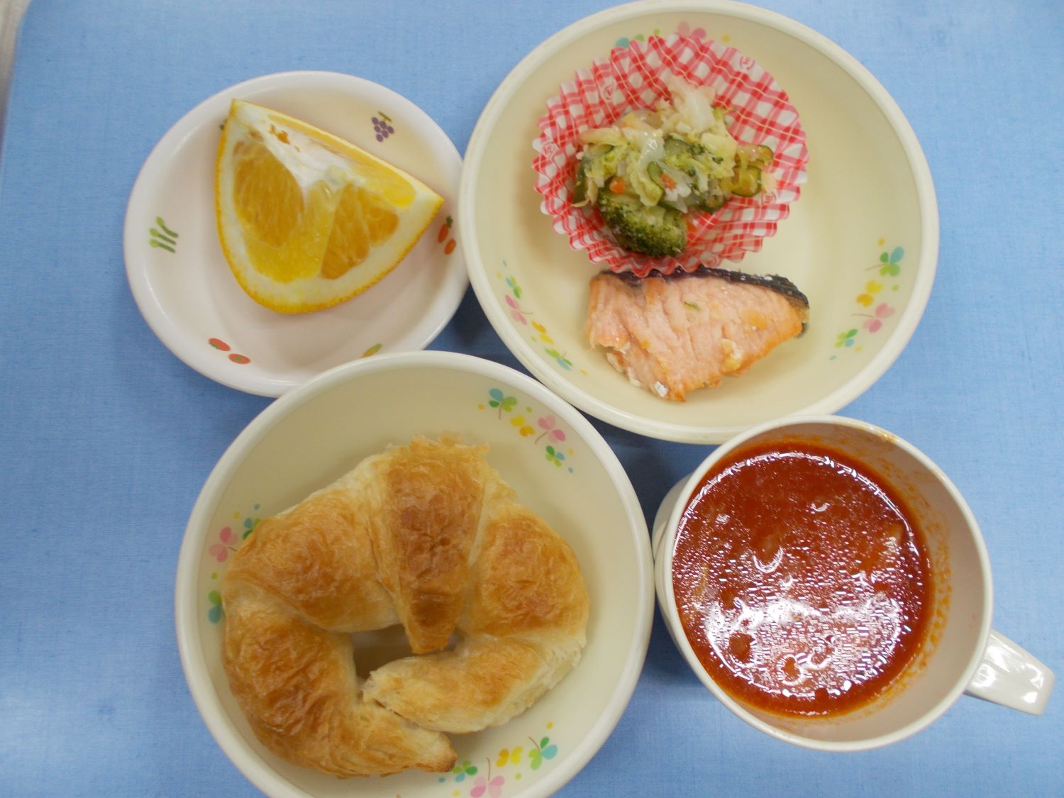 ホームきょうの給食 1/25 今日の給食 2024年1月25日 子どもたちが大好きな給食やおやつを毎日紹介しています! 【幼児食・乳児食】 昼食 クロワッサン ミネストローネ 鮭の香草焼き ブロッコリーサラダ はっさく 3時のおやつ 牛乳 カラフルごはん ぬか漬け 10時のおやつ(乳児のみ) 牛乳