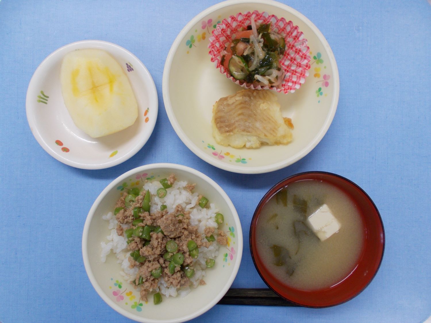 ホームきょうの給食 1/31 今日の給食 2024年1月31日 子どもたちが大好きな給食やおやつを毎日紹介しています! 【幼児食・乳児食】 昼食 しぐれ麦丼 みそ汁 ムニエル 和風サラダ りんご 3時のおやつ 牛乳 マシュマロフレーク 10時のおやつ(乳児のみ) 牛乳