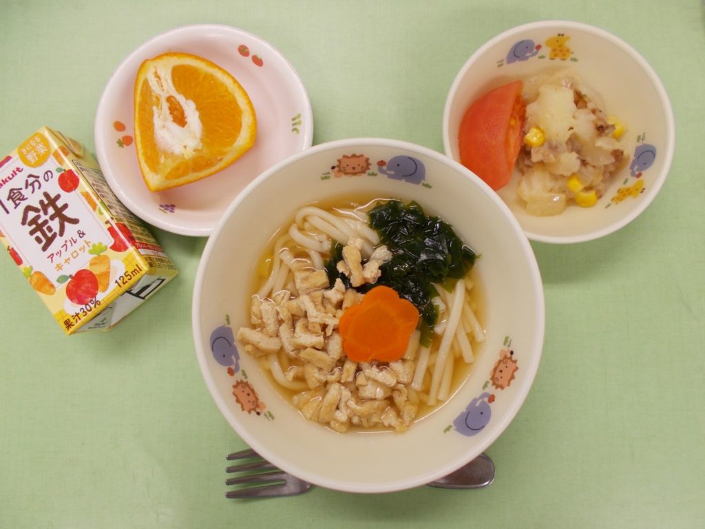 ホームきょうの給食 2/3 今日の給食 2024年2月3日 子どもたちが大好きな給食やおやつを毎日紹介しています! 【幼児食・乳児食】 昼食 きつねうどん ジャーマンポテトサラダ トマト 野菜ジュース いよかん 3時のおやつ 麦茶 そぼろおにぎり ぬか漬け 10時のおやつ(乳児のみ) ジョア