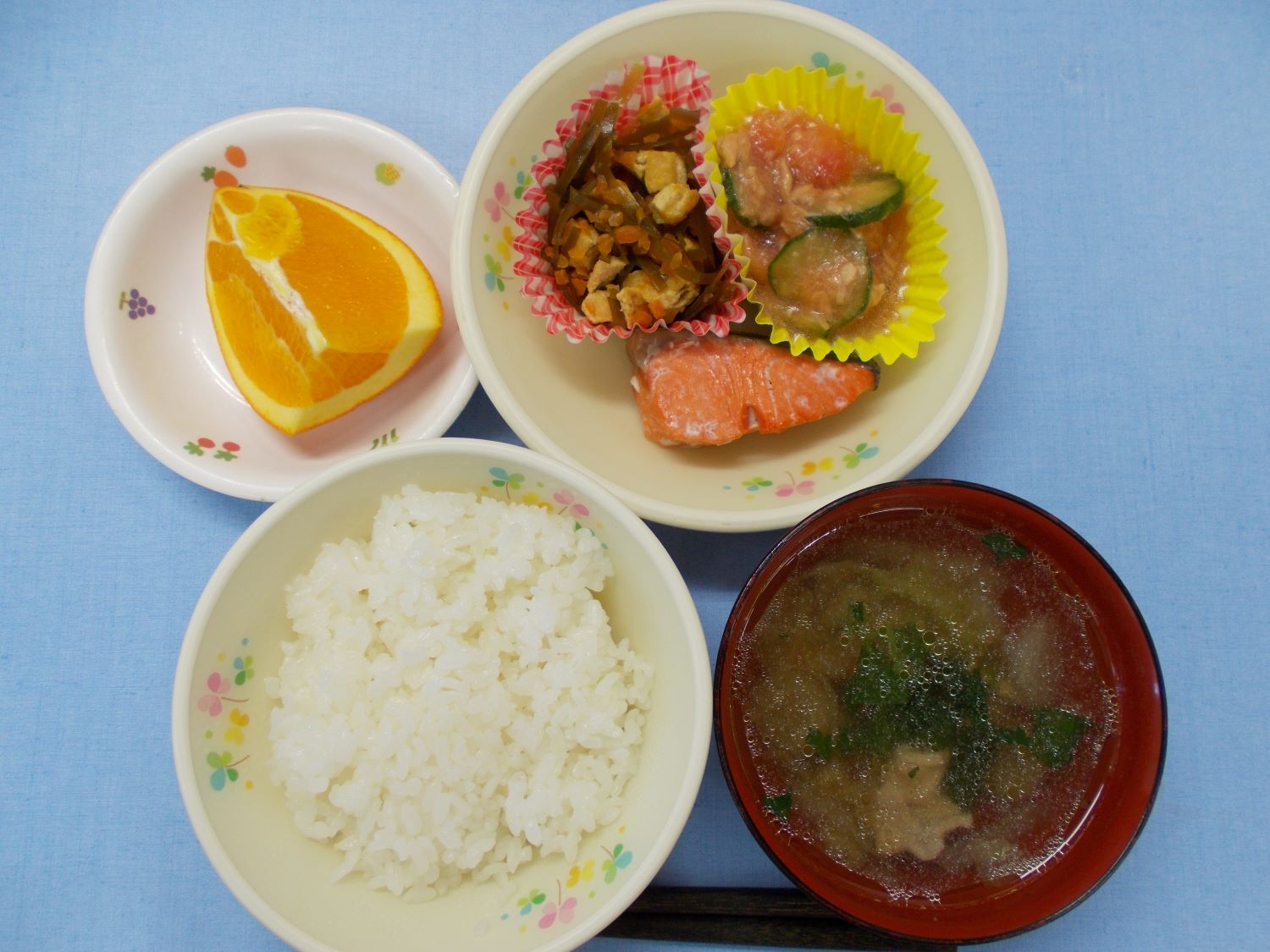 ホームきょうの給食 3/18 今日の給食 2024年3月18日 子どもたちが大好きな給食やおやつを毎日紹介しています! 【幼児食・乳児食】 昼食 ごはん 田舎汁 焼き魚 昆布の煮物 トマトの和え物 オレンジ 3時のおやつ 牛乳 みそ蒸しパン 10時のおやつ(乳児のみ) 牛乳